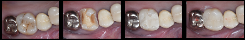 ケース3:銀の詰め物(メタルインレー)と歯との間に隙間ができ、虫歯になった歯をセレック(CEREC)を用いて即日オールセラミック修復治療をおこなったケース!!(1日に2歯治療終了!!)